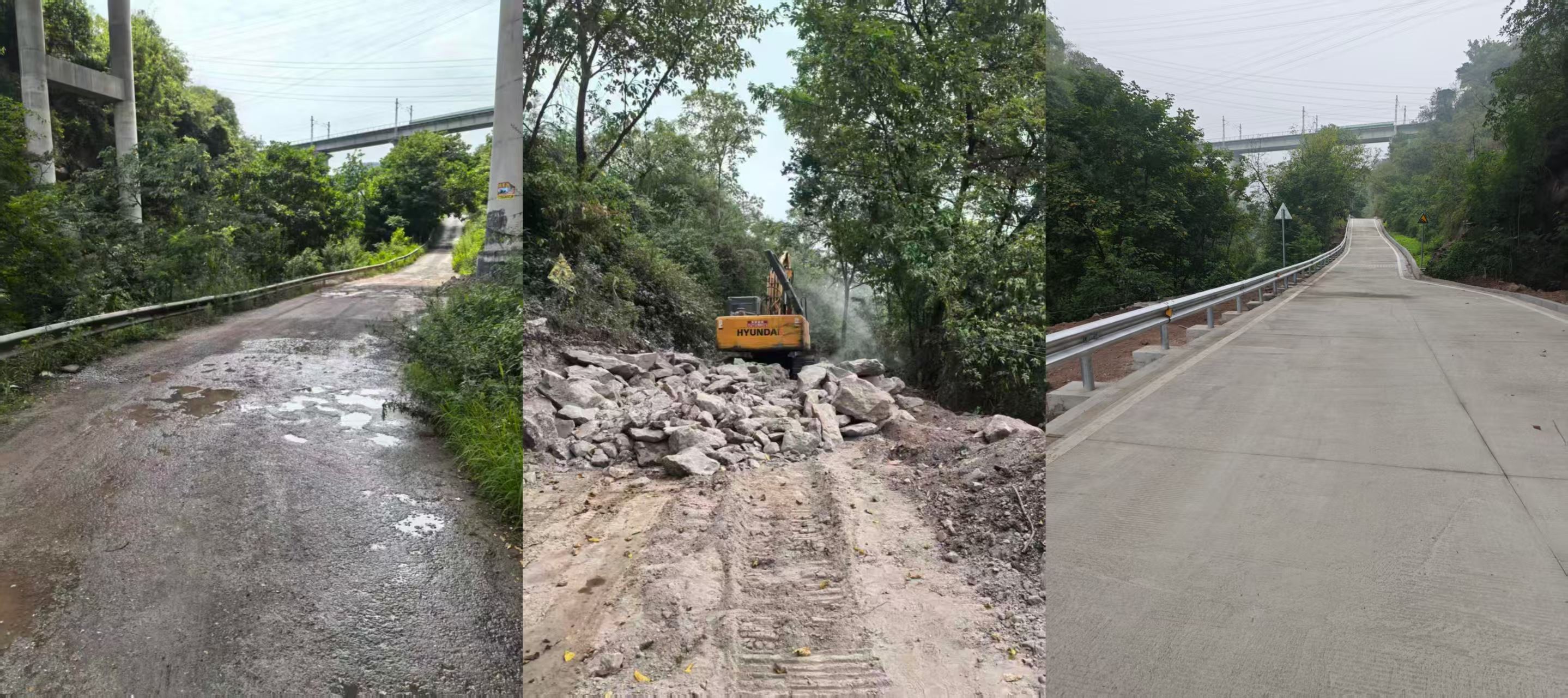 迎龙镇石梯子村区二孔大桥至龙鼎翠谷段乡村公路改造及安全防护工程项目于2025年8月16日正式启动建设,在确保工程质量与安全的前提下,参建各方高效协同推进道路改造各项工作,历时约2个月圆满完成全部施工任